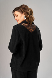 Жакет: – свободный силуэт – без подкладки – рукав двухшовный, втачной – застёжка петля-пуговица декоративная – однобортный – воротник пиджачного типа -декоративный элемент кружево на спине .