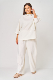 Джемпер: – свободный силуэт – горловина «лодочка» – спущенный рукав 1/4 – декоративное украшение .