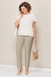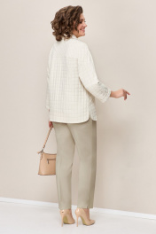 Бежевый костюм: жакет приталенный, брюки прямые, блуза легкая VOLNA 1359 молочно-бежевый