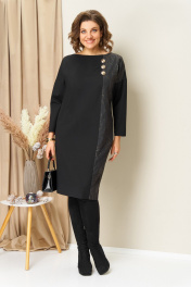 Эффектное платье полуприлегающего силуэта, сочетающая в себе лаконичность и элегантность классического футляра с современным и стильным декором. Вертикальная вставка добавляет модели архитектурной четкости, , а декоративные пуговицы служат изящной деталью. Горловина платья выполнена в форме "лодочка". Для удобства в боковых швах плятья есть потайные карманы. Рукав слегка спущенный, 7/8. Длина платья- 102 см по центру спинки.