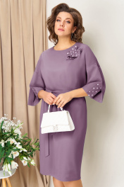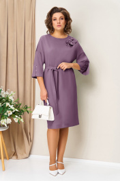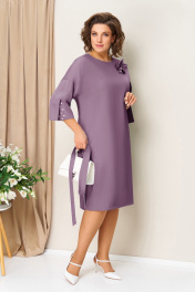 Нарядное платье из облегченного текстиля полуприлегающего силуэта с цельнокроеным рукавом. Оригинальные рукава с небольшими шлицами, отделанными тканью с рисунком горох. Длина платья по центру спинки- 103см. Поя из текстиля и брошь в формк лилия- в комплекте изделия.