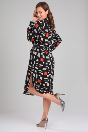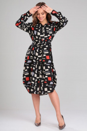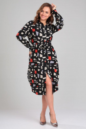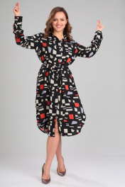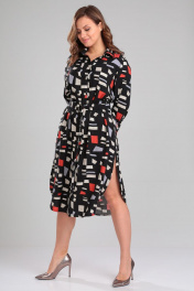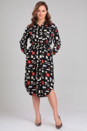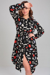 Демисезонное платье-рубашка с поясом и разрезами Your size 2184 принт_на_черном