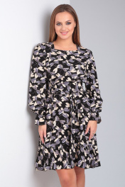 Платье женское свободного силуэта. Рукав втачной, со сборкой в верхней части. Низ рукава собран на эластичную тесьму, которая образует рюшу. Длина рукава для роста 164 см 62 см, для роста 170 см 64 см. Горловина квадратная. По низу платья волан на сборке. Длина изделия от плеча по спинке для роста 164 см 99 см, для роста 170 см 102 см. Пояс широкий в комплекте.