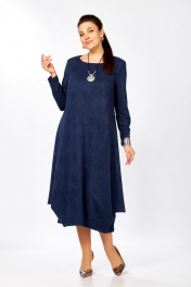 Базовое элегантное платье расширенного силуэта в стиле «бохо» с ассиметричным подолом. Модель выполнена из тонкой трикотажной ткани синего оттенка, свободно струящейся по фигуре, создавая утонченный силуэт. Длинные рукава и длина миди делают его идеальным для повседневной носки. Вырез горловины округлой формы у боковых швов со складками. Платье дополнено поясом, что позволяет регулировать ширину по линии талии. Длина изделия по среднему шву спинки 118,5см., длина рукава 59см. Декор может отличаться от представленного на фото.