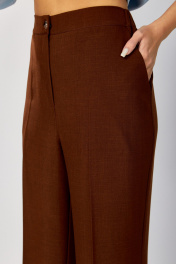 Комплект в стиле деловой/повседневный- небесно‑голубой жакет и коричневые прямые брюки. Образ лаконичный, спокойная цветовая гамма с контрастом холодного голубого и тёплого коричневого. Современный, слегка расслабленный силуэт подчеркивает достоинства фигуры и обеспечивает комфорт в течение всего дня. Двубортный жакет свободного кроя с широкими лацканами и декоративными,оттененными в основной цвет ткани,пуговицами привлекает внимание с первого взгляда. Рукав три четверти придаёт образу лёгкости и современности. Брюки прямого силуэта с чёткой стрелкой визуально удлиняют ноги и создают плавную, стройную линию. Костюм сдержан в деталях, но выразителен по комбинации оттенков. Отлично подойдёт для работы, встреч и вечерних мероприятий. Модель жакета-двухбортный, свободный крой, длина по среднему шву спинки 68см. Длина рукава-три четверти. Застёжка- пуговицы. Брюки-высокая посадка,пояс по бокам и спинке на резинке, центральная стрелка, длина 113 см.Карманы- функциональные боковые карманы в брюках. Посадка- комфортная, слегка свободная. Ткань средней плотности, держит форму и не мнётся в повседневной носке .