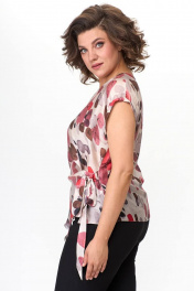 Стильная женская блузка - базовая и популярная вещь гардероба любой женщины. Летняя жаркая погода не доставит дискомфорта, блузка приятная к телу, не мнется во время носки. Без застежки. Вырез горловины круглый. Силуэт свободный. Рукав короткий. С боку разрез, бант. Классический крой блузки будет комфортно сидеть на любом типе фигуры. При подборе необходимого размера, используйте таблицу обмерных данных в готовом виде. Чтобы перейти в общий каталог моделей, нажмите на иконку бренда в карточке товара. Спасибо, что выбираете ZLATA!